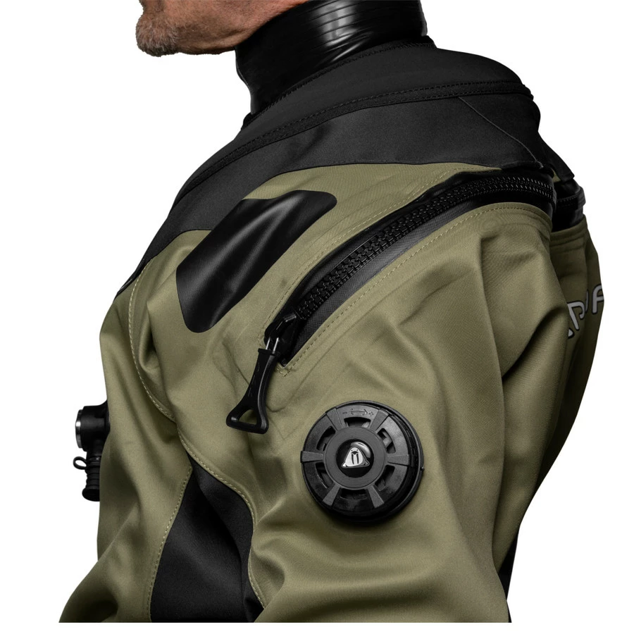 Comme la D3 est dĂ©rivĂ©e d’une combinaison militaire, elle est conçue pour une mobilitĂ© et un contrĂ´le sans restriction, Ă la fois au-dessus et au-dessous de la surface. C’est pourquoi elle a une coupe plus fine autour du torse et des jambes pour rĂ©duire la traĂ®nĂ©e et les mouvements d’air inutiles, ce qui amĂ©liore le contrĂ´le. La D3 a encore un peu plus d’espace autour des Ă©paules pour amĂ©liorer la mobilitĂ© dans cette zone. Grâce Ă l’emplacement de la fermeture Ă©clair et au tissu tri-lam très doux, il n’y a littĂ©ralement aucune restriction de mouvement.