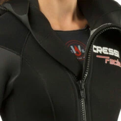 La combinaison se caractérise par le système WATER STOP SYSTEM, dans lequel une brassière interne particulière en matière ULTRASTRETCH crée une double barrière contre les infiltrations d’eau ainsi qu’une meilleure isolation thermique.