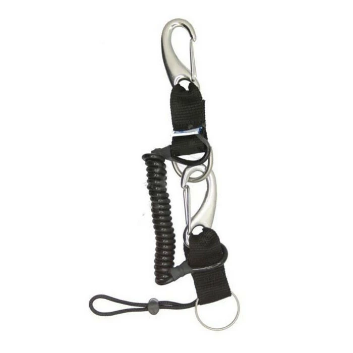 - La Dragonne à Ressort 3 Pièces est un accessoire essentiel pour les plongeurs. Elle comprend 2 Mousquetons Vela et un Anneau Inox pour une fixation sûre et pratique.