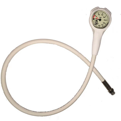 - Avec son cadran blanc contrasté et ses aiguilles lumineuses, ce manomètre offre une excellente visibilité même dans les conditions de faible luminosité sous-marine. Sa construction résistante à la corrosion garantit une longue durée de vie.