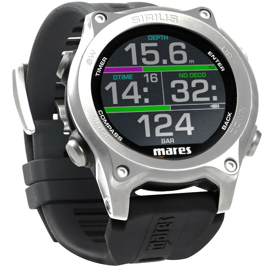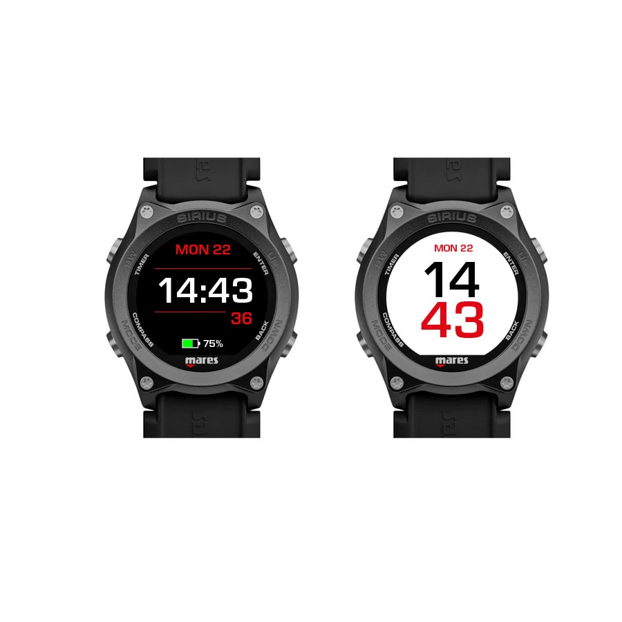 Le Sirius est un ordinateur de plongée au format montre qui allie parfaitement technologie et élégance. Les caractéristiques de cet ordinateur de plongée présentent une technologie haut de gamme à la fois pour le plongeur loisir que pour le plongeur technique. Le plongeur loisir peut voir les données de plongée de manière simple et intuitive, avec la possibilité d’intégrer les données de la bouteille grace à un émetteur en option. Le plongeur technique peut insérer jusqu’à cinq mélanges nitrox et trimix. Grâce au bracelet interchangeable, il peut être utilisé avec n’importe quelle épaisseur de combinaison.