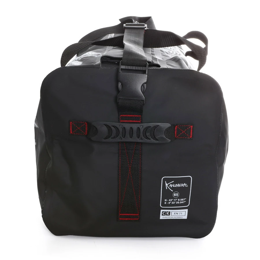 Le sac étanche n’est PAS adapté comme aide à la flottabilité ou pour une utilisation sous-marine. Il n’est utilisé que comme protection contre les éclaboussures d’eau. Les objets de valeur doivent également être protégés dans un sac hermétique. KANUMERA décline toute responsabilité pour les dommages, quelle qu’en soit la cause