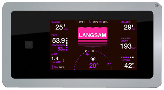 3 affichages sont possibles en plongée : classique, nuit et Lady 😉