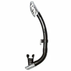 La partie supérieure, de large diamètre, est rigide pour une meilleure stabilité et pour fournir un volume d’air plus grand tandis que la partie basse, annelée, est facile à utiliser et ne gêne pas lorsqu’on ne se sert pas du tuba.